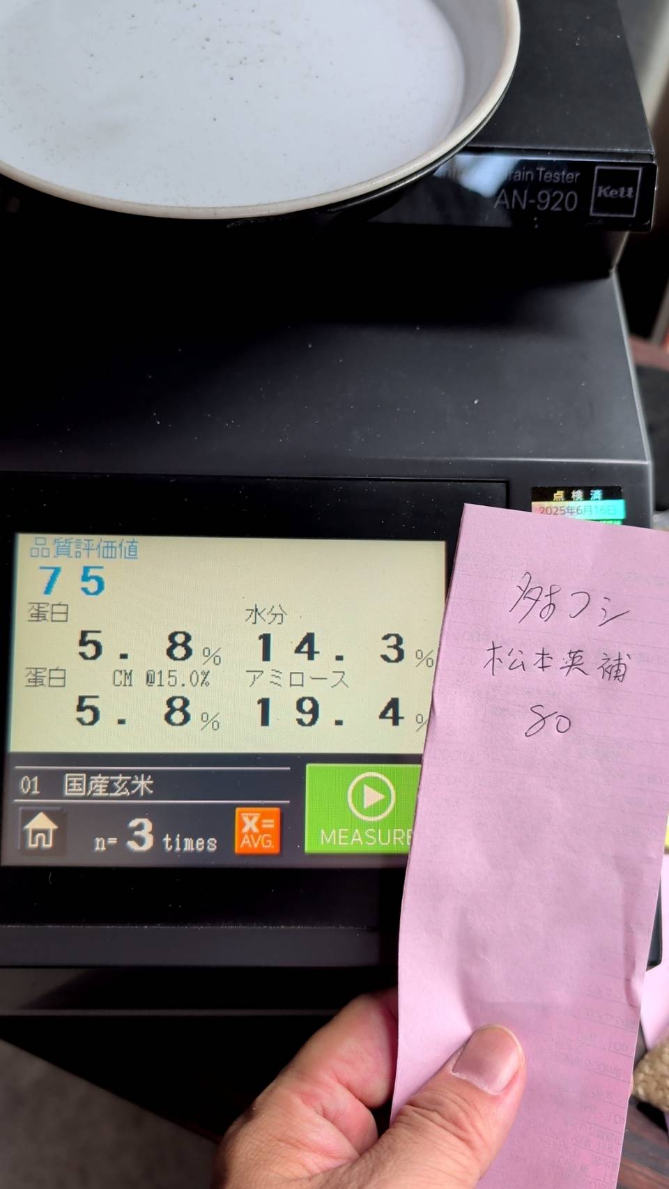 2025-9-17出荷精米分(原料玄米)より生産者は多古町の松本英補様です。